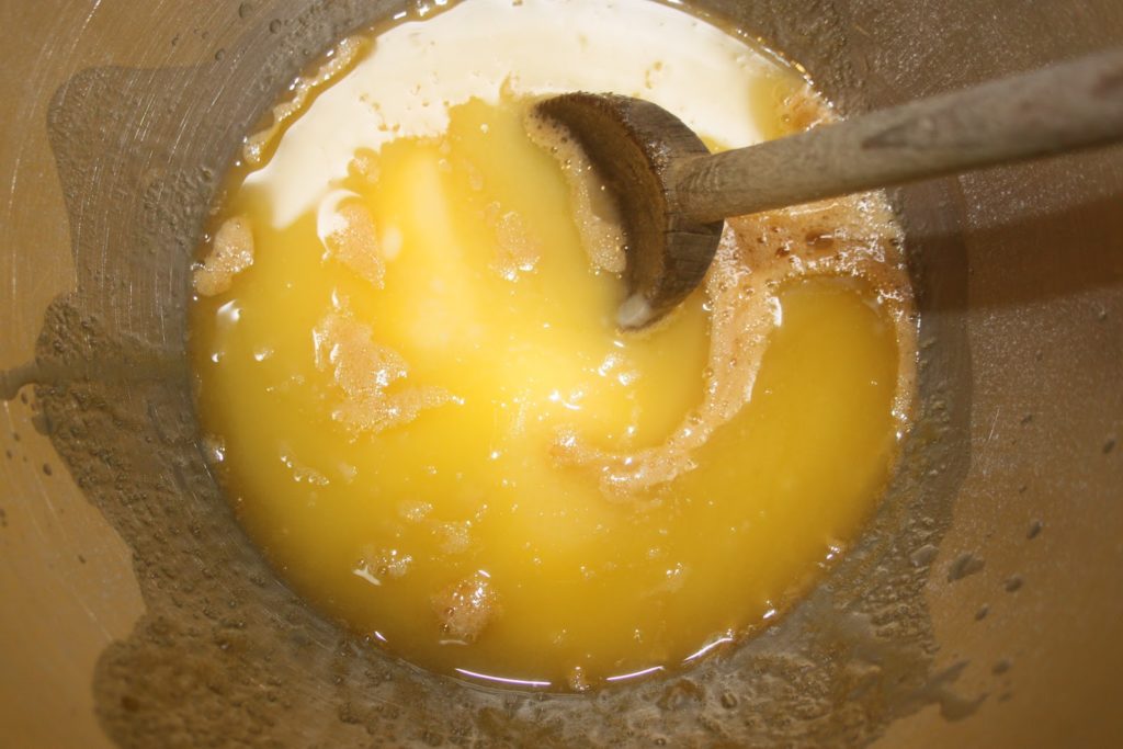 Ajouter le beurre fondu et bien mélanger.