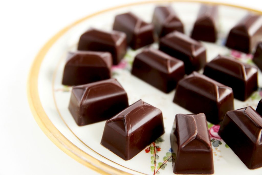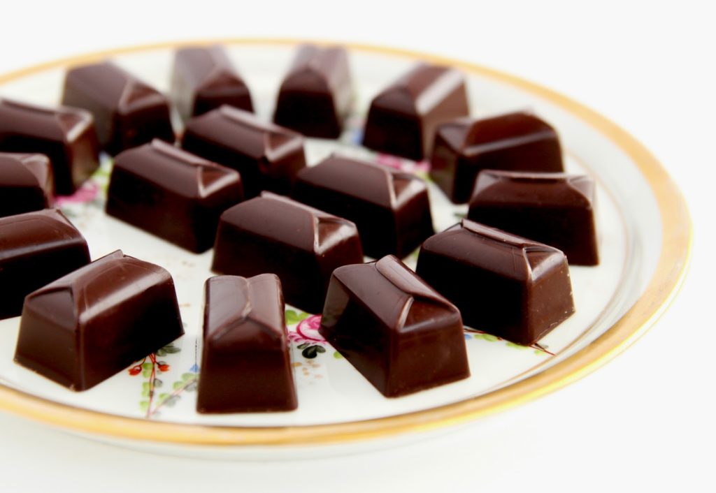 - Laisser une ou deux heures à température ambiante, puis renverser le moule. Récupérer les chocolats avec des gants en latex pour ne pas laisser de trace sur ces friandises!