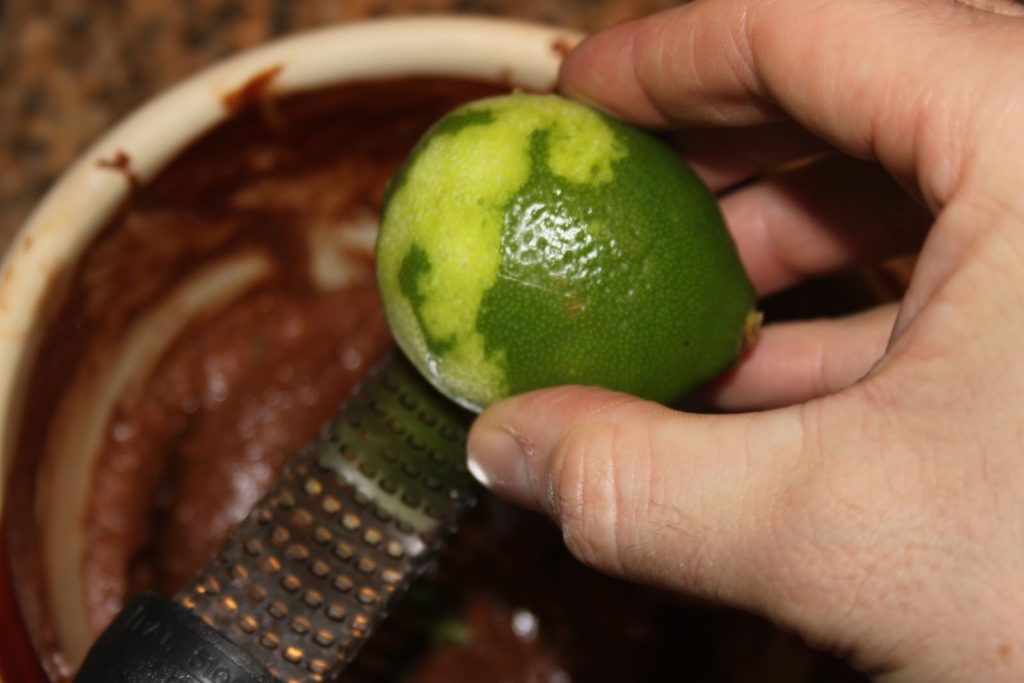 - Bien mélanger puis ajouter les zestes de tous les citrons verts non traités. J’ai mis le zeste de 6 citrons, mais on peut en mettre 4, goûter, puis les ajouter un à un jusqu’à obtenir la saveur souhaitée.