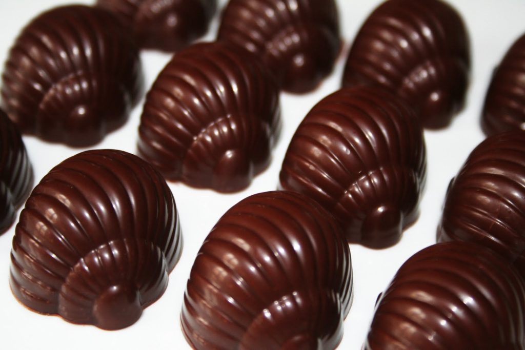 Laisser cristalliser puis racler parfaitement avec un couteau. Démouler d’un coup sec les chocolats.