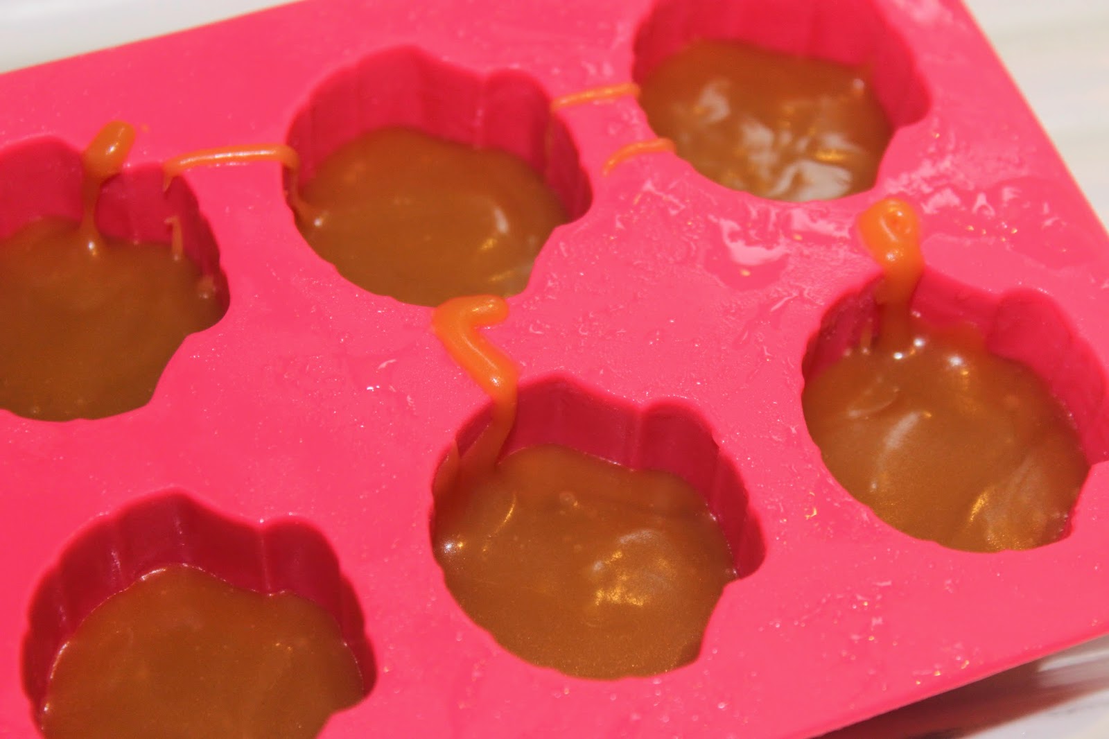 Soit en les ouvrant au couteau. Cela vaut surtout si vous voulez ajouter du caramel au beurre salé. Pour cela, j’ai pris ma recette de sauce au caramel (recette ICI) que j’ai mis dans des bacs à glaçons au congélateur pendant une nuit.