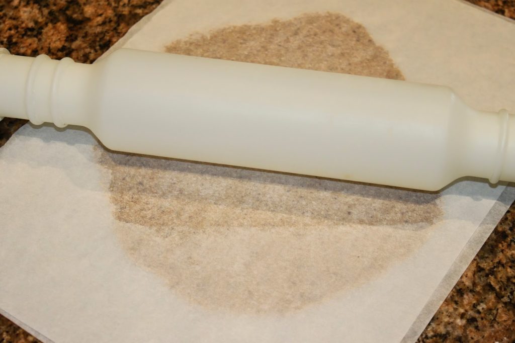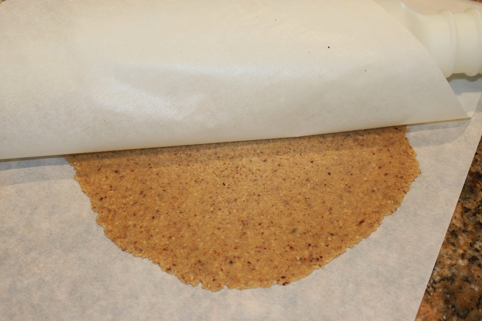 Placez cette pâte sur une feuille de papier sulfurisé puis placez-en une autre dessus Étalez le tout au rouleau sur l’épaisseur la plus fine possible (1mm).