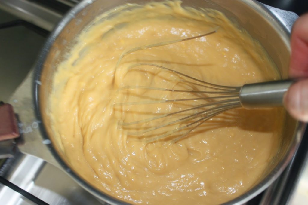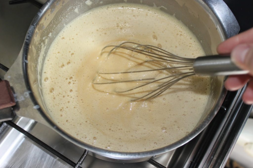 Reversez le tout dans la casserole puis mettez sur feu doux tout en fouettant.