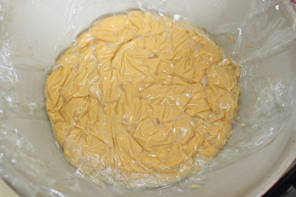 Une fois arrivée à ébullition, la crème est bien prise. Versez-la dans un plat puis filmez au contact. Laissez refroidir à température ambiante puis mettez au frais.