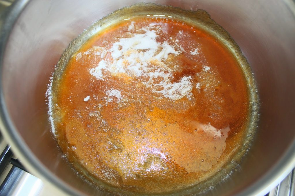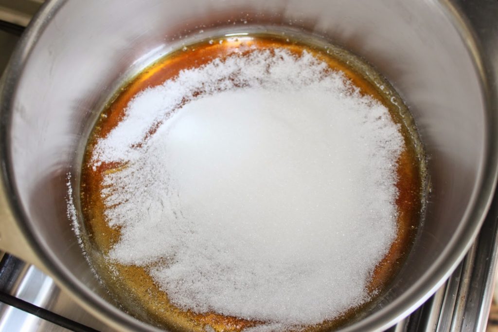 Le sucre va commencer à fondre puis enfin à caraméliser. Ne mettez pas un feu trop fort car le caramel risquerait de brûler et de prendre un goût amer.