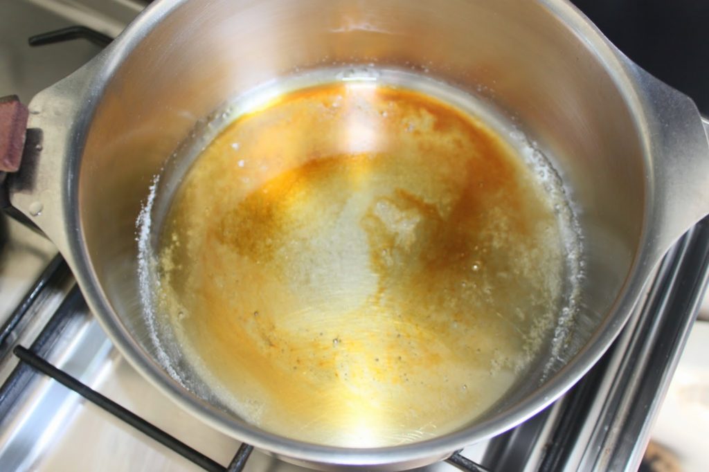 Faites chauffer sur feu doux sans bouillir pour juste laisser fondre le caramel.