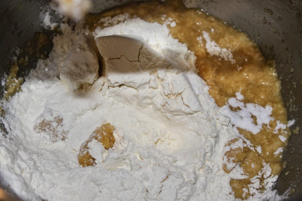 - Mélangez de nouveau et versez la farine et le bicarbonate de sodium.