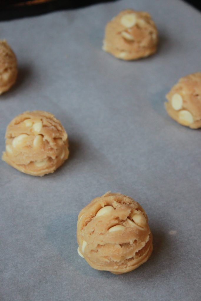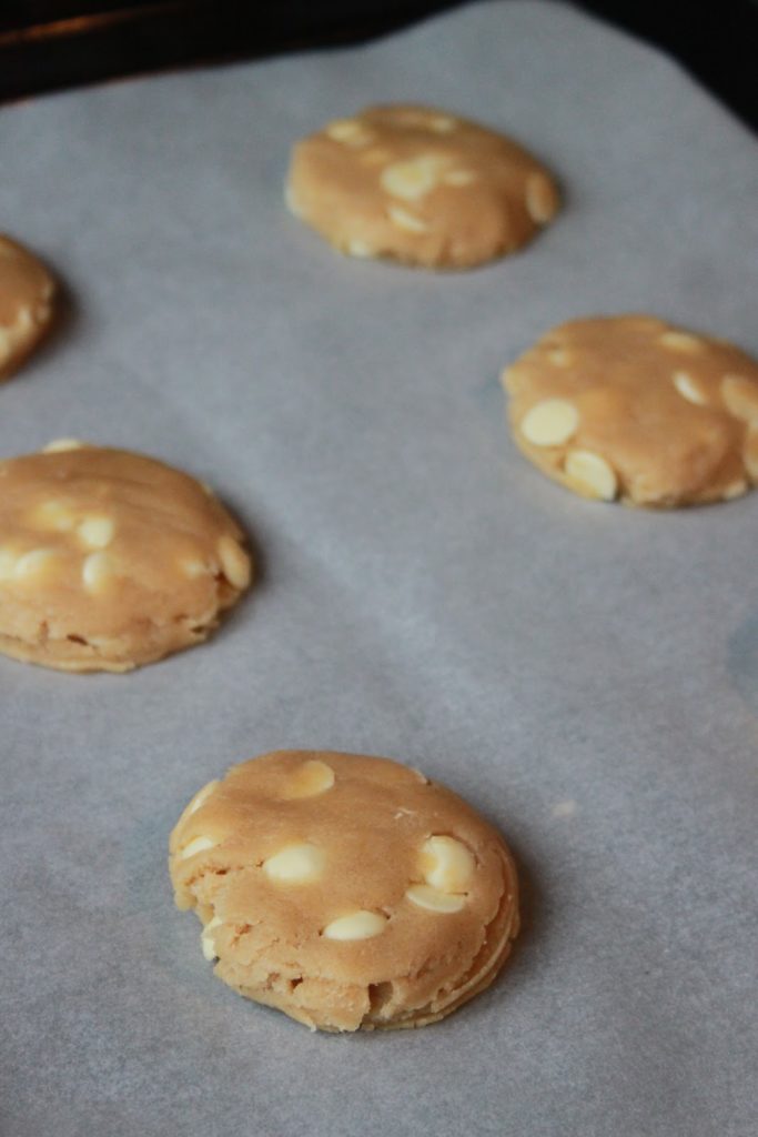 Cuire au four à 135°C pendant 13-14 minutes. Les cookies ont une apparence de pâte non cuite, mais ils vont être parfaits en refroidissant!!