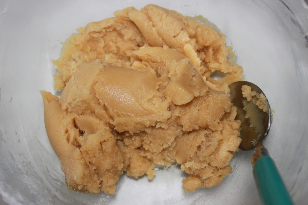 Bien mélanger puis laisser reposer 45 minutes au frais. Prélever ensuite des boules de pâte. Je prends une cuiller à glace que je remplis au ras. Je racle bien cette cuiller et j’obtiens ainsi la même quantité que les cookies L.Todd (47g).