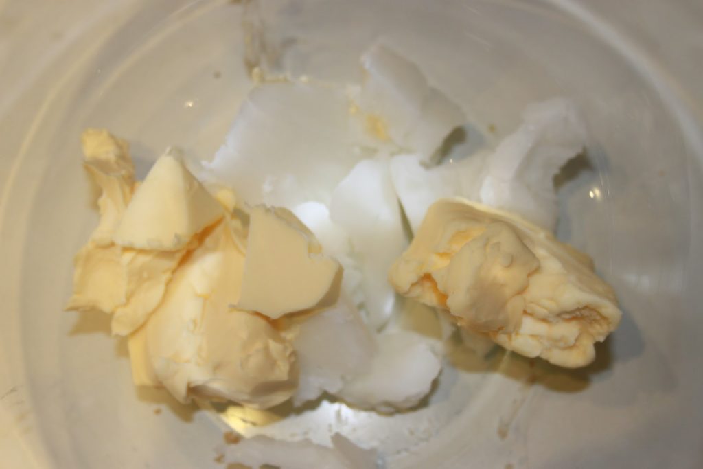 Mettre le beurre, la margarine et la végétaline dans un bol et mettre à fondre au bain-marie ou au micro-ondes.