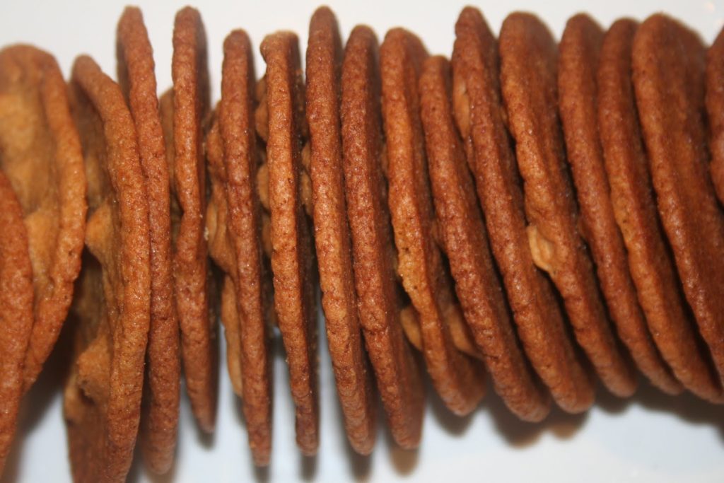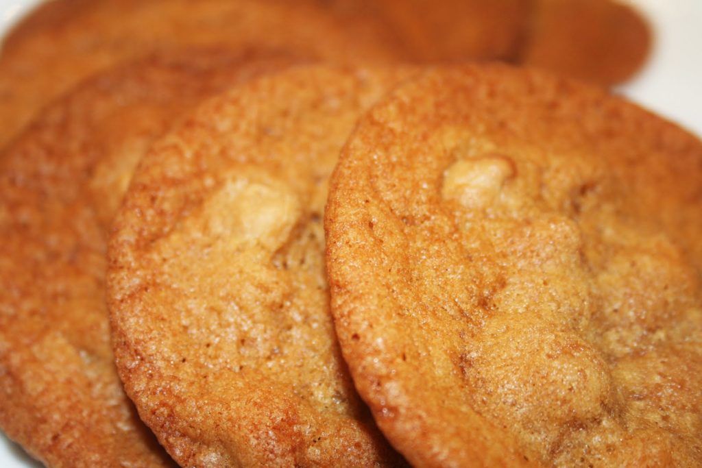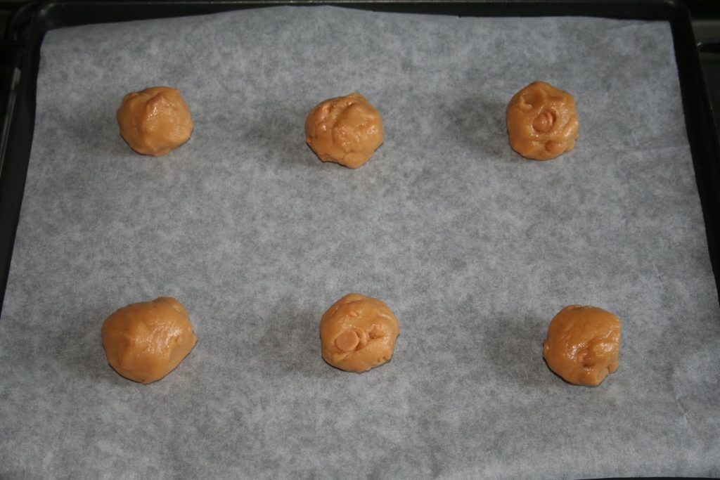 Ces cookies moelleux doivent leur texture merveilleuse à un ingrédient inhabituel dans une recette de cookie! Je mets celle-ci en ligne car ces petits gâteaux sont juste divins! La seule difficulté est de trouver ces pépites au beurre de cacahuètes, mais vous pourrez trouver toutes les boutiques dans la rubrique « mes adresses »… J’ai eu quelques difficultés à prendre les photos car à chaque fournée, mes neveux se précipitaient sur les cookies brûlants!!
