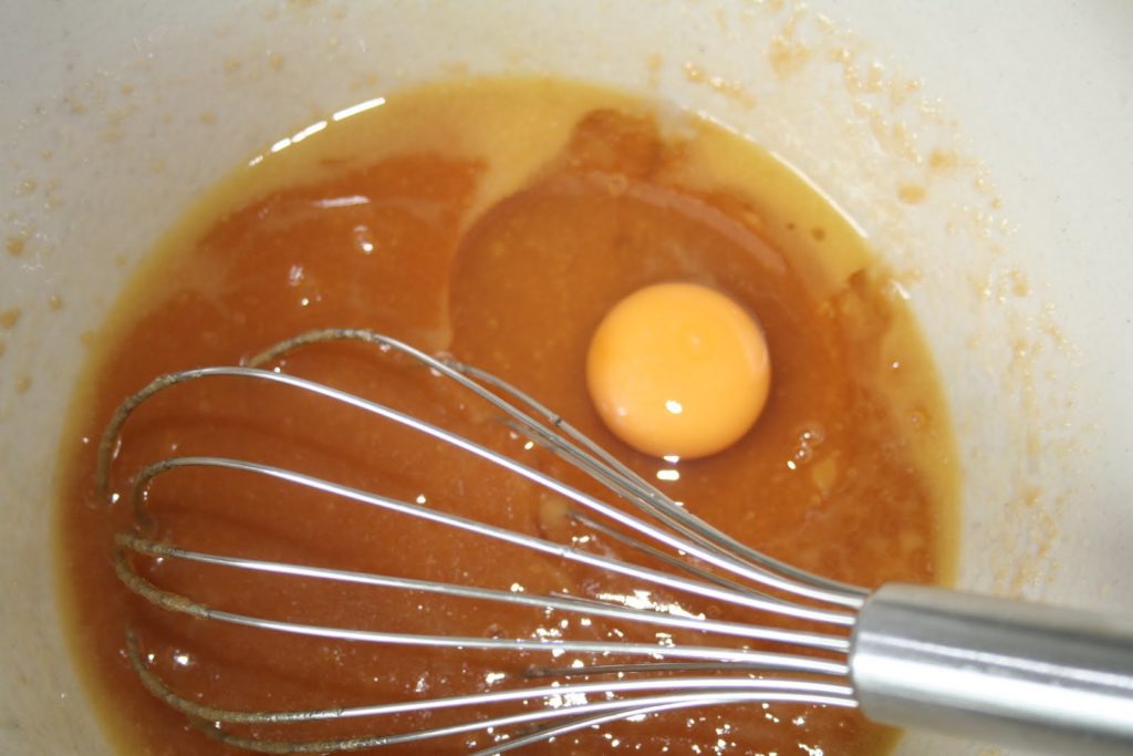 - Préchauffer le four à 180°C.Mélanger le beurre mou, les sucres et l’œuf.