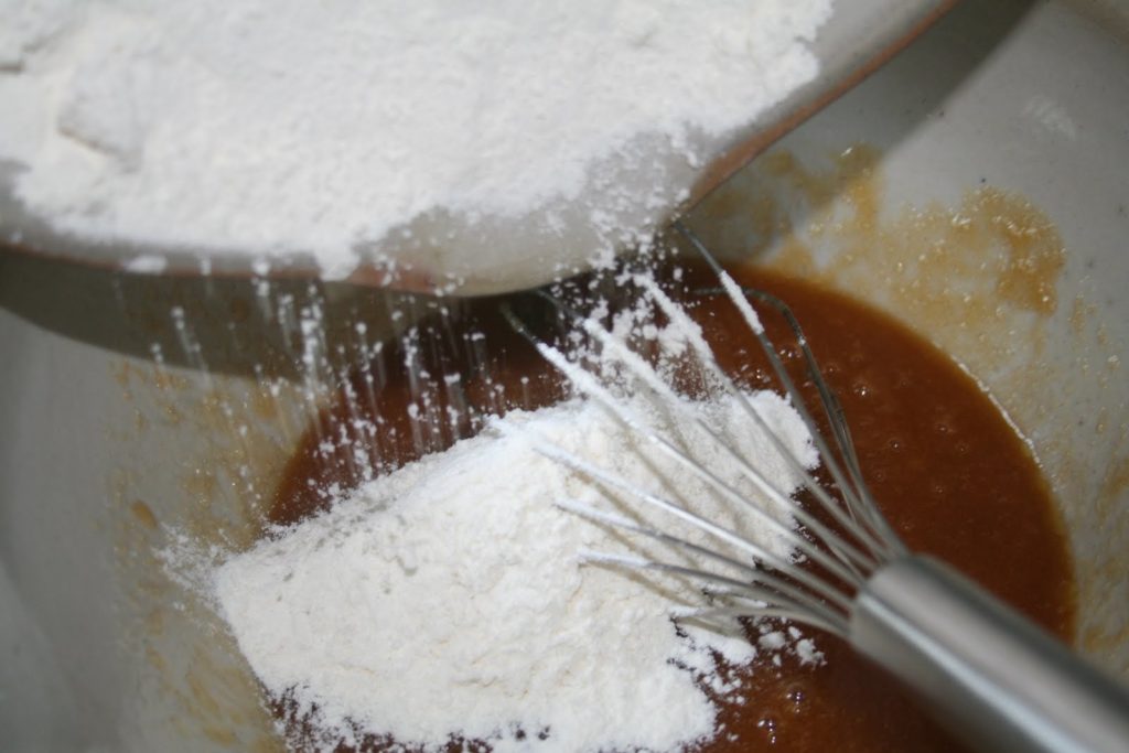 - Mélanger la farine, la levure, le bicarbonate et la maïzena dans un bol puis les ajouter au mélange sucres/beurre/œuf.