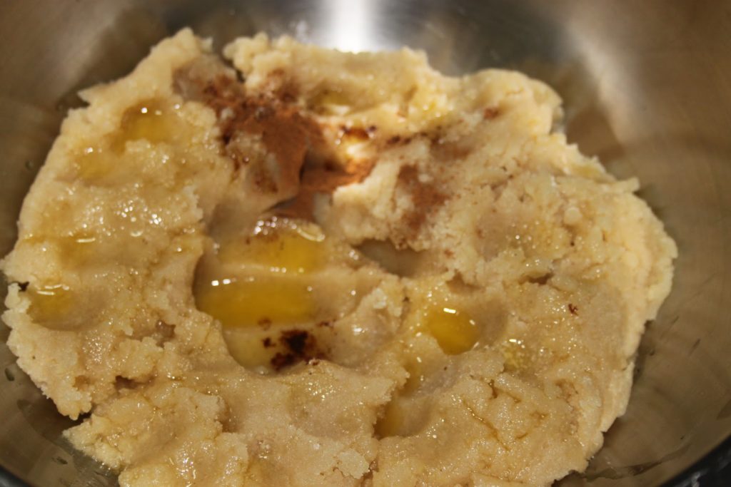 - Il faut passer une deuxième fois la farce pour obtenir une belle pâte. Ajouter la cannelle et le beurre fondu.