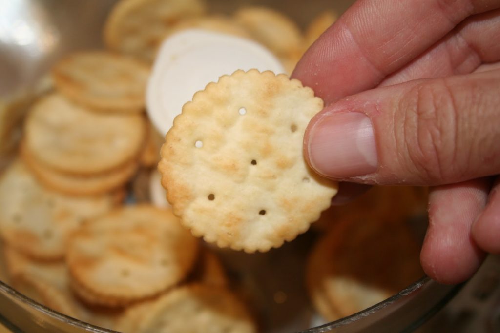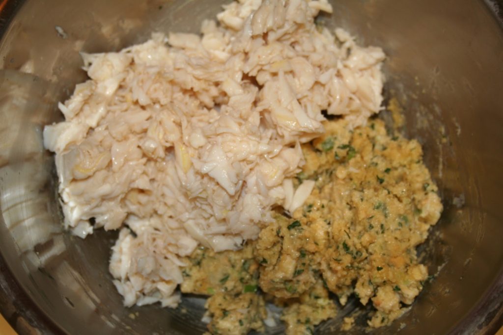 Pour cette recette, nous allons utiliser de la mayonnaise et des crackers. C’est bien la façon de procéder et non pas une de mes lubies!! Le résultat est cependant parfait. On peut tout à fait utiliser de la mayonnaise industrielle pour les mêmes raisons que j’explique dans la terrine d’asperges blanches. Il faudra dans ce cas, veiller à prendre une marque de qualité. Le problème de la mayonnaise maison ( que je privilégie toujours d’habitude!!) est qu’elle peut tourner à la cuisson… Pour les crackers, les américains utilisent des « saltines »… Cela ressemble assez à nos « tucs » salés. Mais on trouve maintenant facilement des crackers salés dans les supermarchés… Pour le crabe, le frais est toujours meilleur mais il est parfois long de le décortiquer. J’ai acheté de la chair fraiche déjà décortiquée. Le seul souci est le prix, mais le résultat est tellement bon…