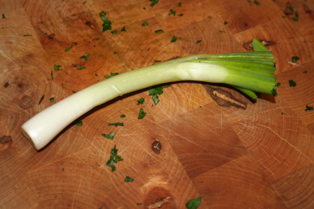 Faire de même avec soit un oignon en botte (autant de vert que de blanc…) haché très finement, ou alors en prenant des cives chinoises (2 ou 3), l’essentiel étant d’avoir deux cuillerées à soupe au final.