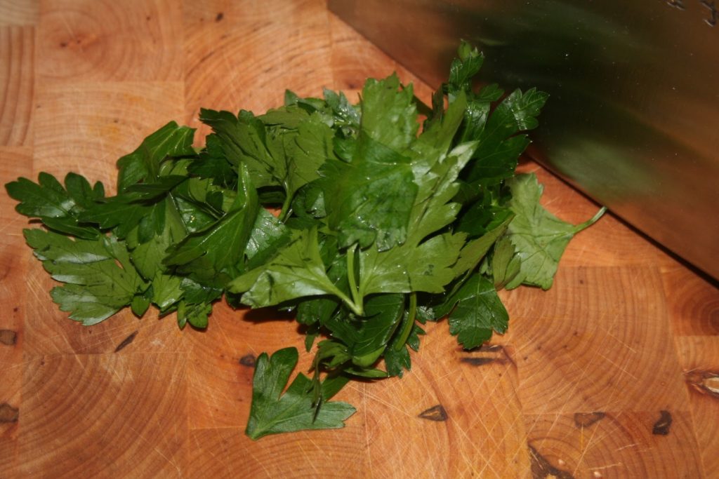 Commencer par hacher finement le persil plat.