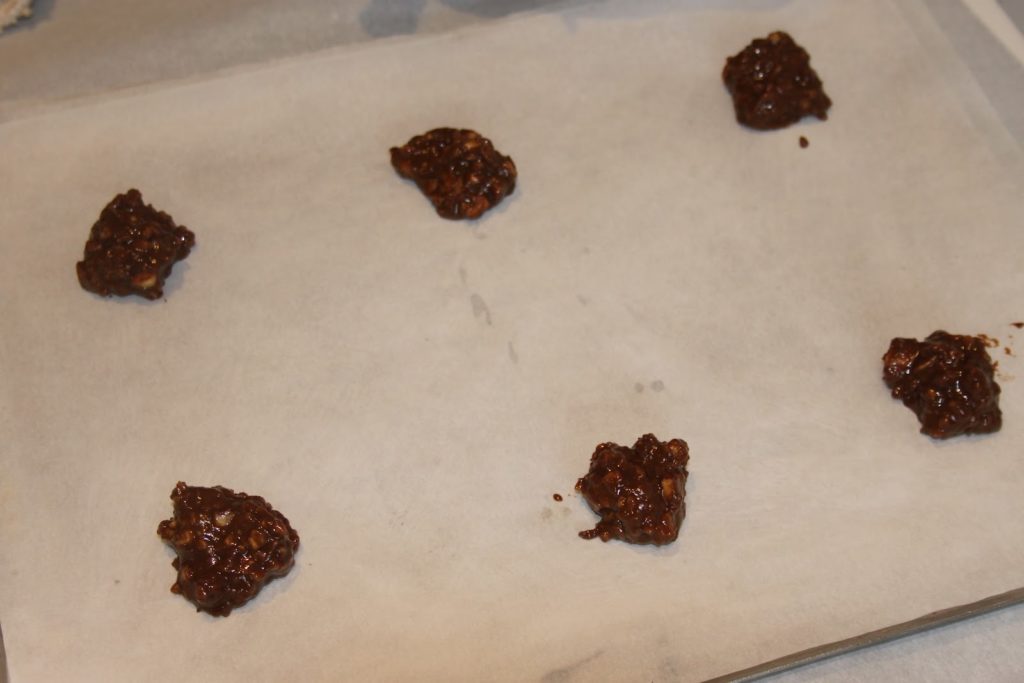 - Sur une plaque à pâtisserie garnie de papier sulfurisé, placer 6 tats formés avec une cuiller à café.