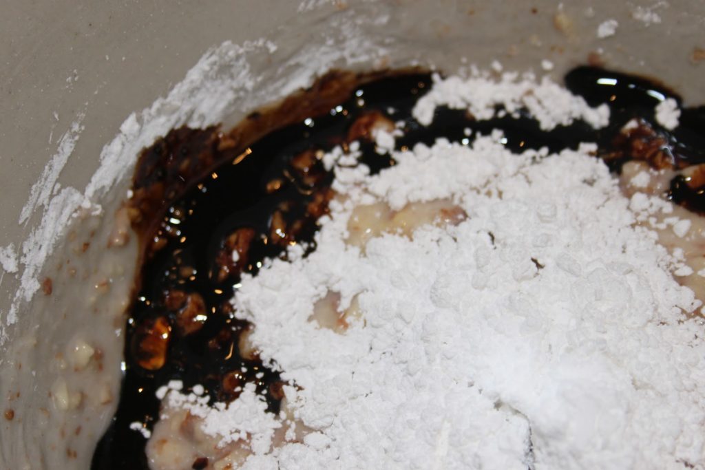 - Les placer dans un grand bol et ajouter le sucre glace, l’extrait de café liquide et les 35g de blanc d’oeuf (le blanc d’un gros oeuf!).