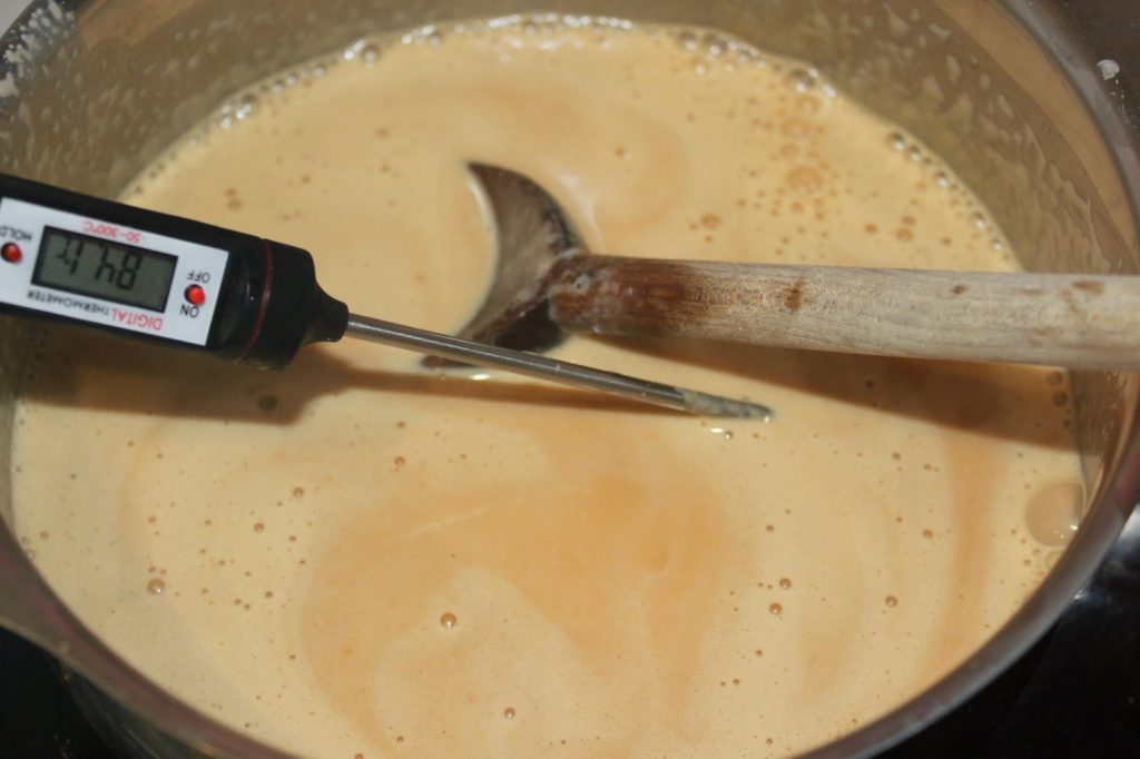 - Portez la crème à 88-89°C. Comme pour une crème anglaise. Elle doit napper la cuillère.