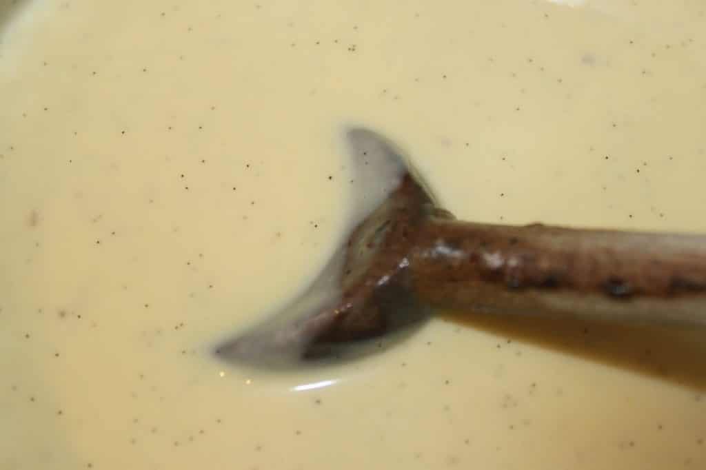- Commencez par vider l’intérieur de la gousse de vanille dans les jaunes mélangés à 15g de sucre.