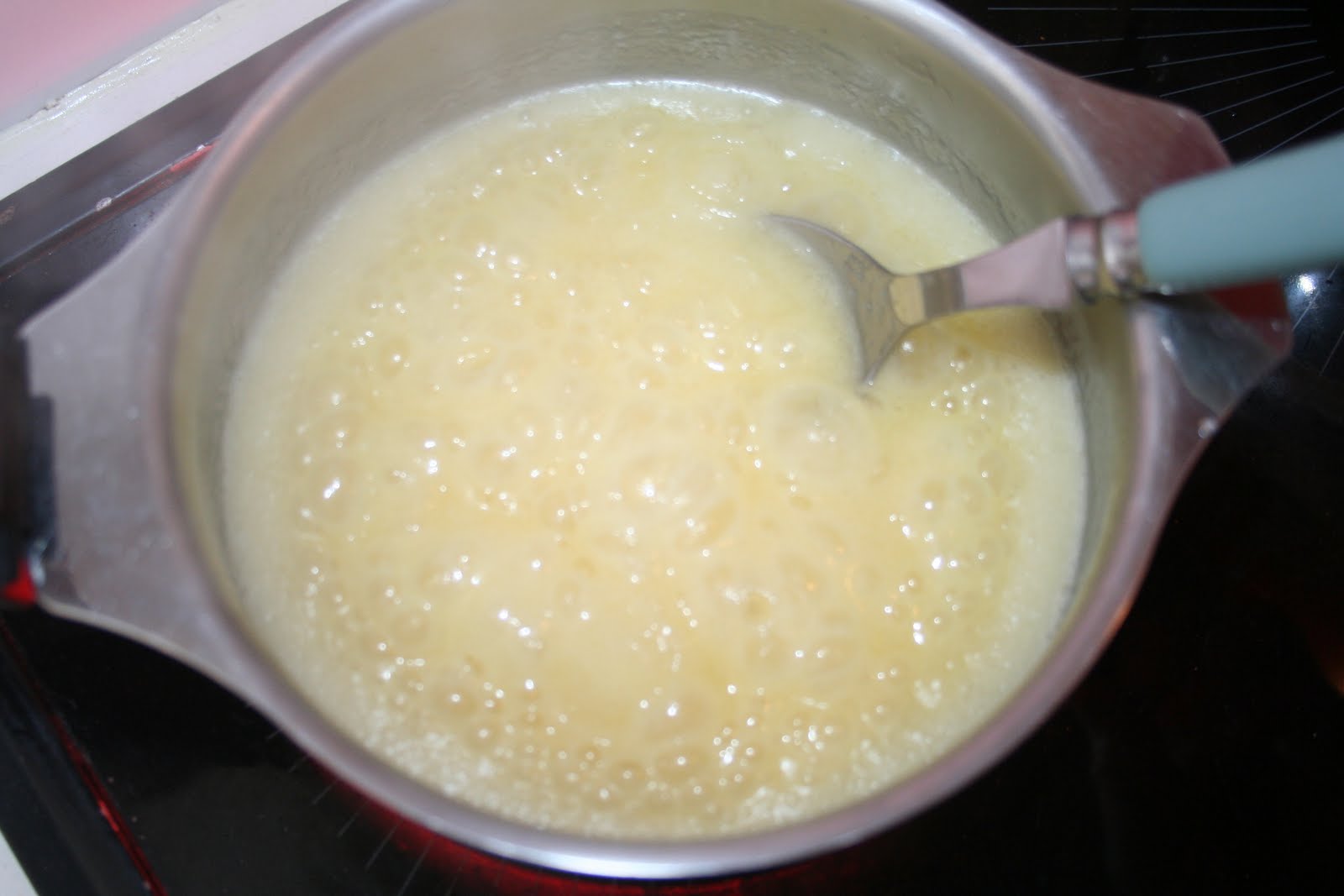 On doit obtenir un caramel plutôt clair car il va ensuite recuire au four!