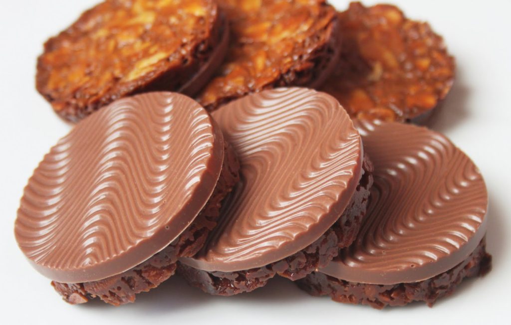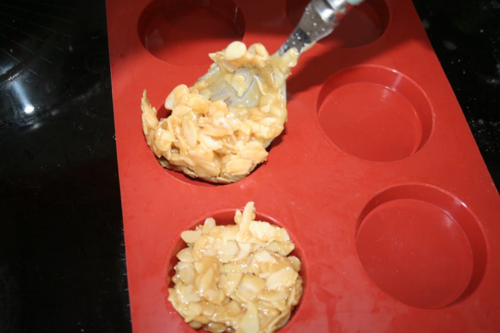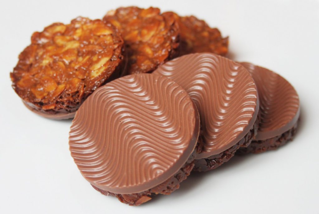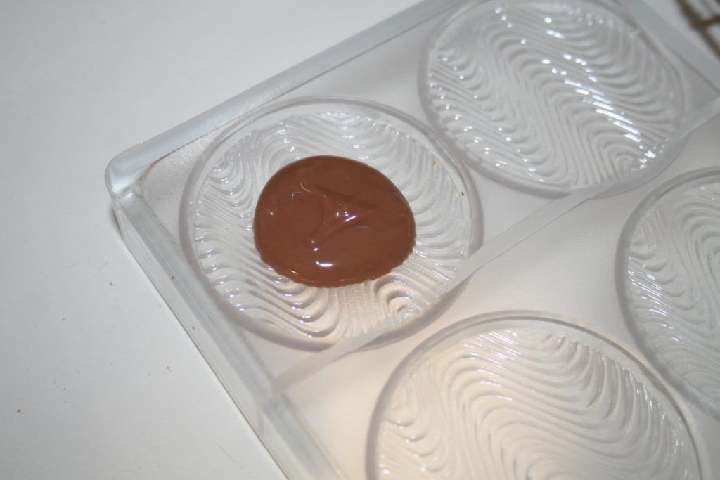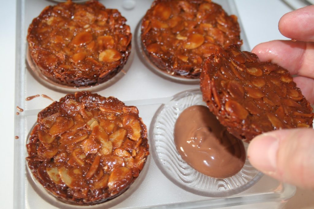 - Quand le chocolat est tempéré, verser une cuillerée à café dans l’empreinte à florentins.