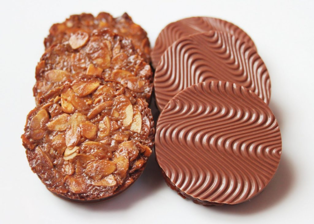 On dirait des florentins, mais ils sont plus croustillants et ne contiennent que des amandes effilées. De plus, une fine couche de chocolat vient souligner l’ensemble! Un petit gâteau (ou plutôt une friandise, car il n’y a pas d’oeuf, ni de farine!) qui sera parfait pour le thé ou le café.