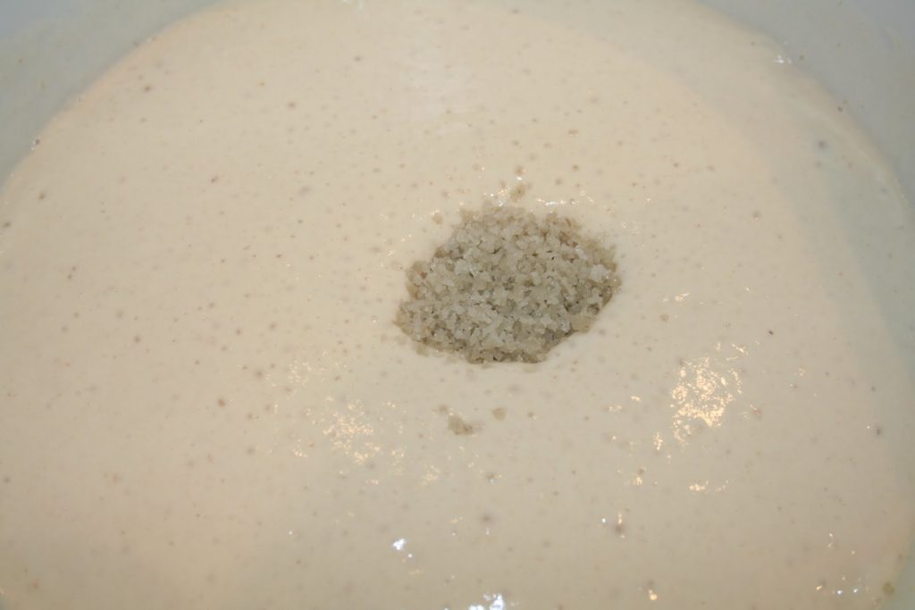 - Ajouter au bout de cette heure de repos, le gros sel. Mélanger vigoureusement pendant encore 1 minute avec le fouet.