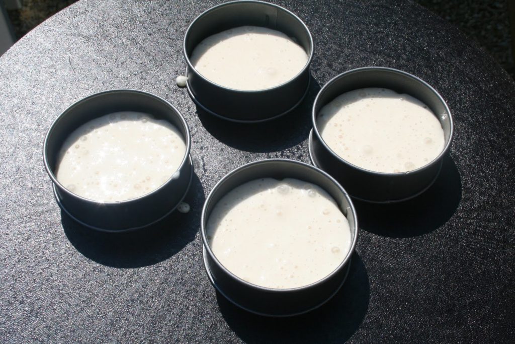 Laisser de nouveau reposer la pâte pendant 15 à 20 minutes. Ça nous laisse le temps de préparer la poêle et les cercles à crumpets.