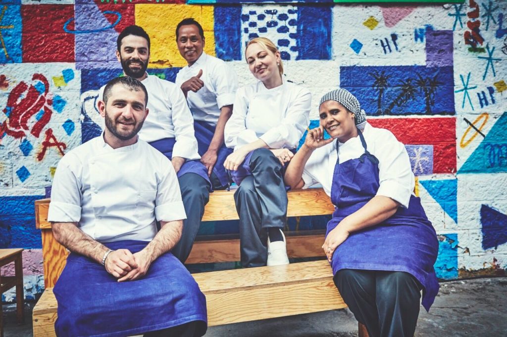 Les Cuistots Migrateurs c’est aujourd’hui une vingtaine de personnes dont la moitié sont des chefs réfugiés, tous employés en CDI et encadrés et formés par un chef professionnel.