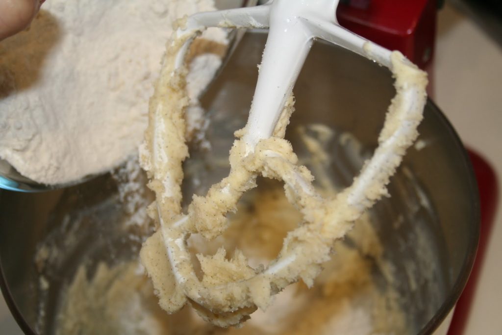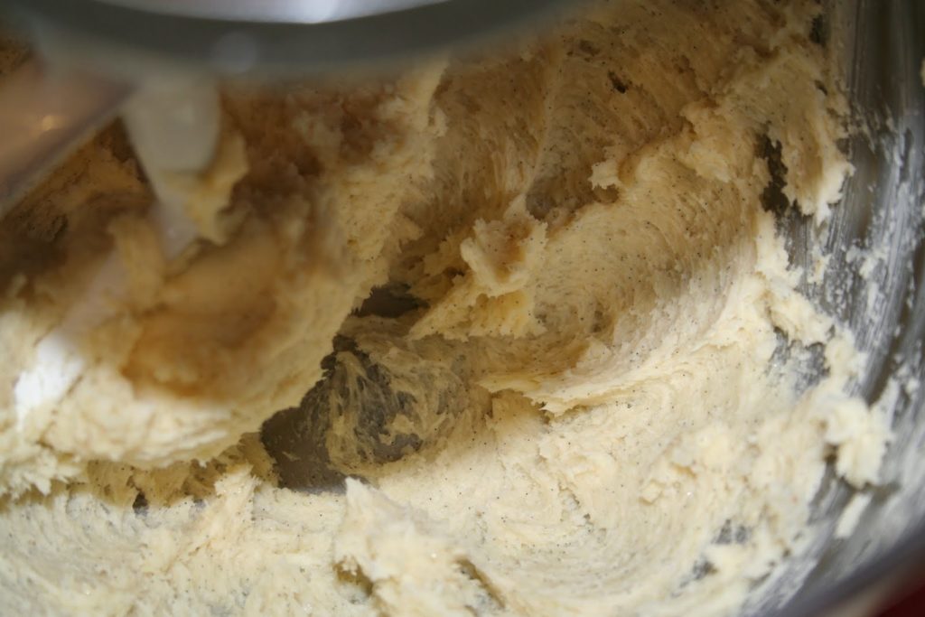 - Commencer par mélanger le sucre et les beurres mous. Le plus simple est de préparer la pâte dans la cuve d’un robot Kitchenaid ou Kenwood. Il y a une raison à cela, les diamants auront cette légèreté, seront presque feuilletés si la pâte est mélangée rapidement. Et l’avantage du robot est que cette opération est très rapide! Mais on peut tout à fait les faire manuellement!