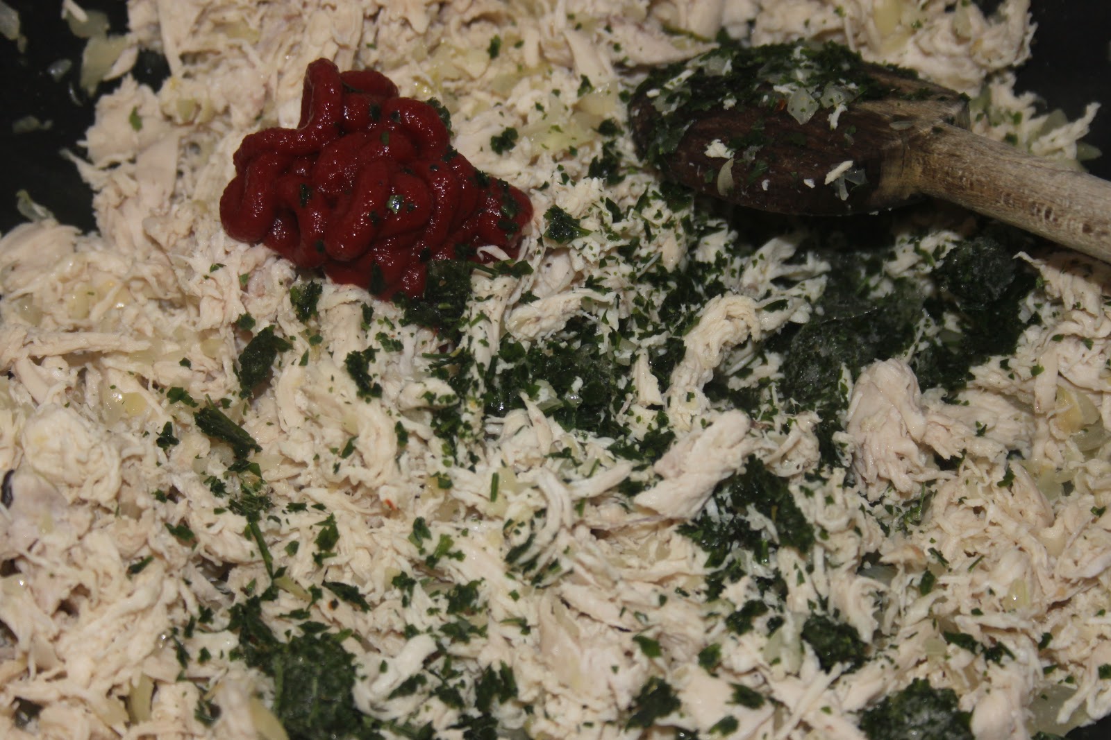 - Bien mélanger et ajouter le persil et le double concentré de tomates.