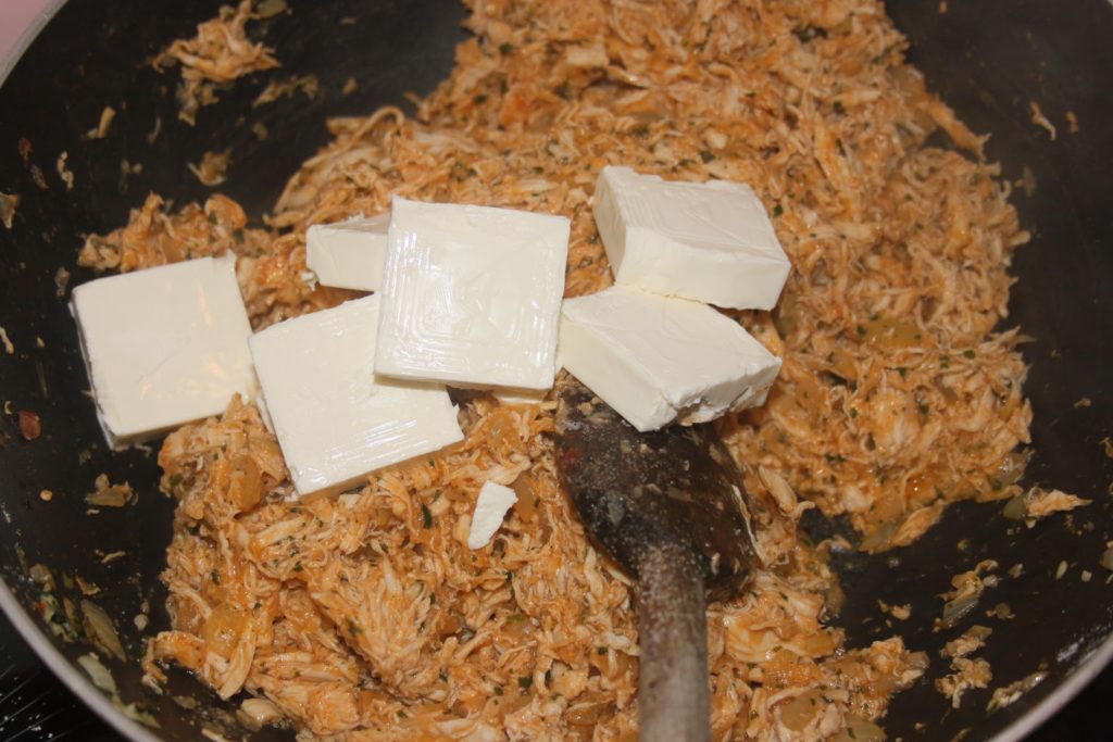 - Laisser mijoter pour que le liquide s’épaississe un peu. Ajouter le catupiry ou le Kiri!