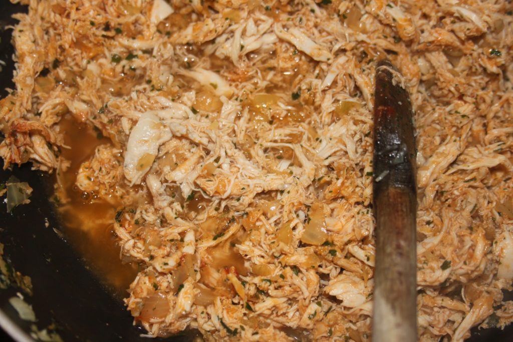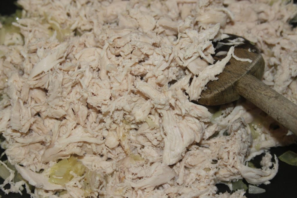 - Effilocher le poulet avec une fourchette.