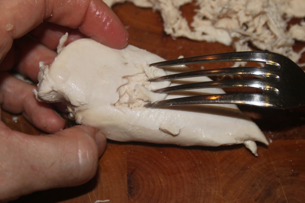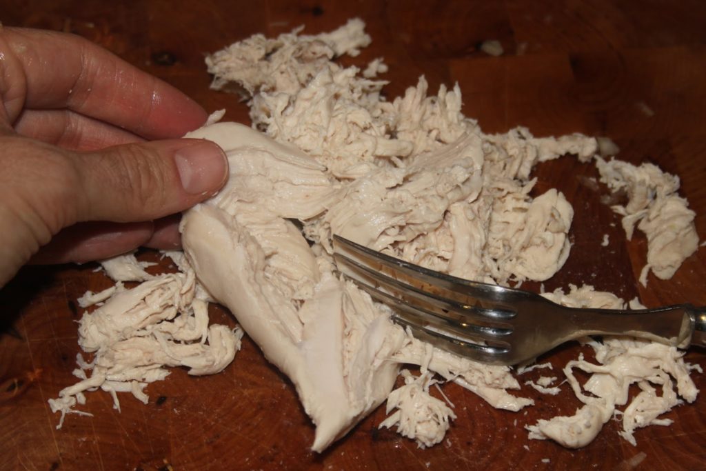 Effilocher le poulet avec une fourchette.