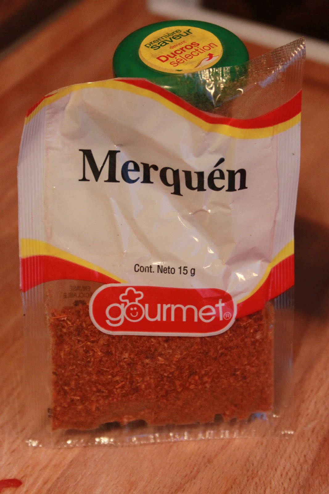 Si l’on en trouve (je ne sais pas si c’est si facile à trouver en France) on peut ajouter du Merquen. Il s’agit d’un mélange d’épices (ail et piment) qui nous vient du Chili. J’avais acheté ce paquet à Santiago lors de mon voyage culinaire.