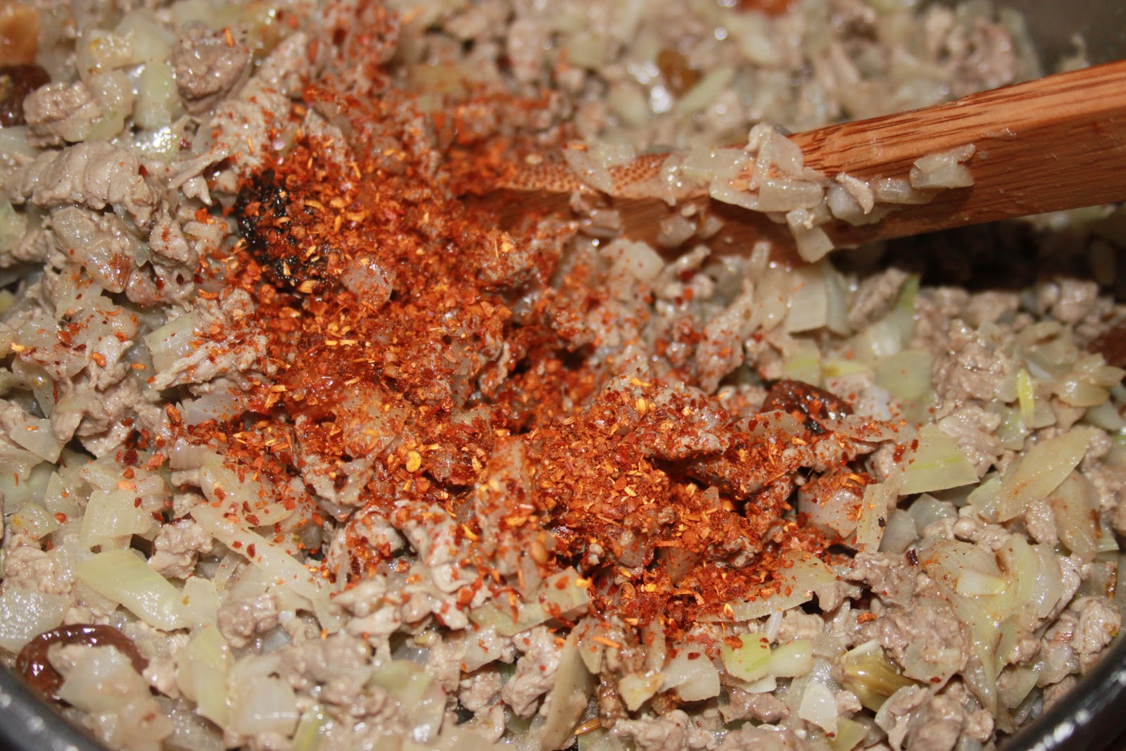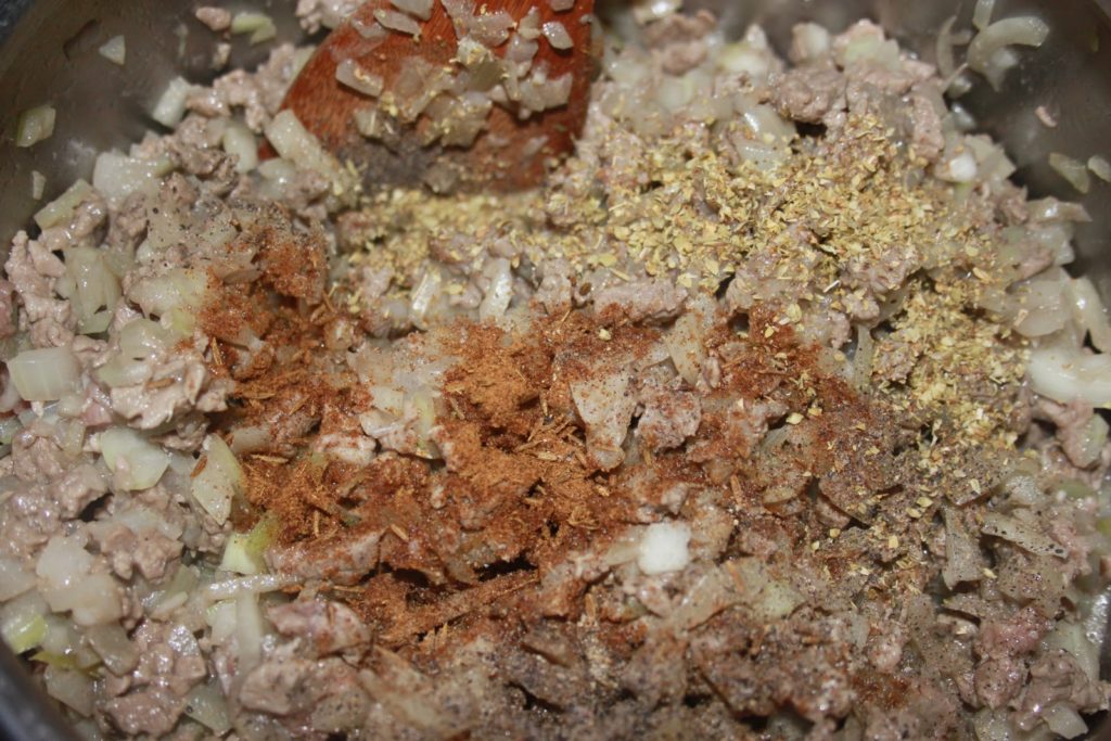 - Laisser cuire jusqu’à ce que le boeuf et les oignons rendent du jus. Ajouter à ce moment l’origan et le cumin. Je vous laisse juges de la quantité à mettre. Il faudra ajuster les épices à la fin de la recette, avant de farcir les empanadas.