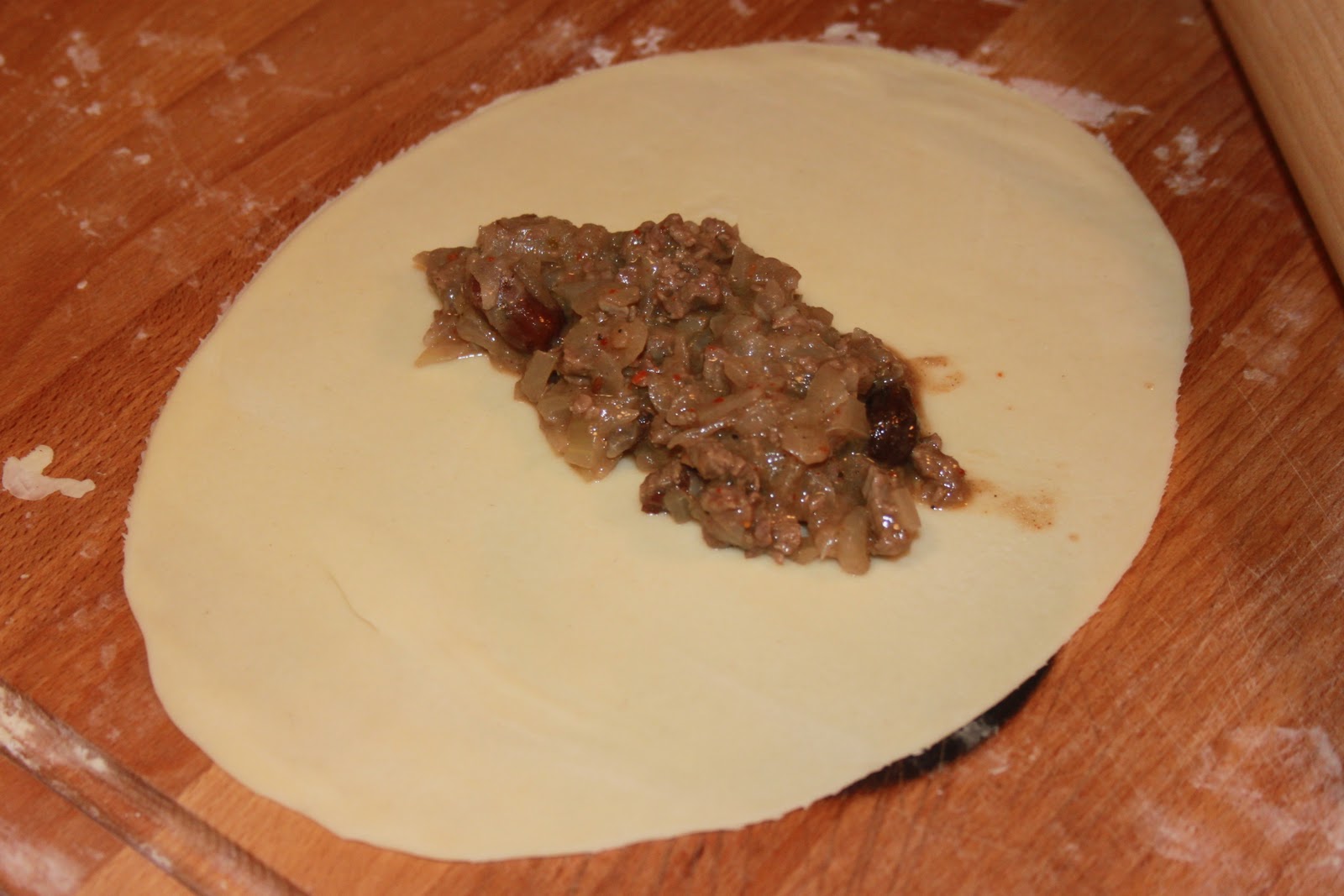 Je vous avais parlé, lors de mon voyage culinaire de Santiago du Chili (voir le reportage ICI), de ces délicieuses « empanadas de pino », ces sortes de petits pains farcis au boeuf, oeuf, oignons et raisins secs. J’en avais dévoré une certaine quantité et j’avais promis de vous apporter un jour la recette. C’est chose faite grâce à mon ami bon Alejandro qui m’a donné celle de sa maman. Nous avons réalisé cette recette ensemble et je tiens à le remercier d’avoir pris le temps de les réaliser avec moi alors qu’il sera papa d’ici peu. La seule chose que l’on arrive pas à expliquer dans cette recette, c’est son nom, car « de pino » veut dire en effet « aux pignons de pain ». Pourtant partout au Chili, ces empanadas sont farcies de la même manière. Je vous proposerai un jour d’autres recettes d’empanadas, car on en trouve dans presque toute l’Amérique du Sud (à part au Brésil). Certaines sont cuites au four, d’autres frites et la pâte varie d’un endroit à l’autre (pâte feuilletée, pâte à pain etc…).