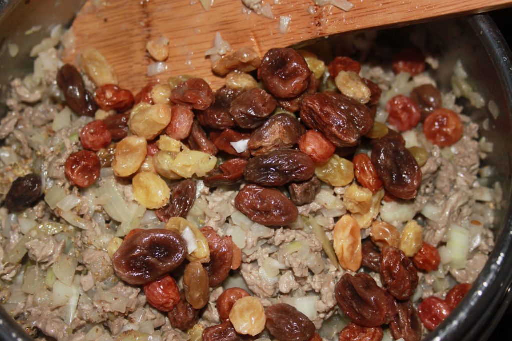 - Ajouter également les raisins secs gonflés (sans l’eau de trempage!).