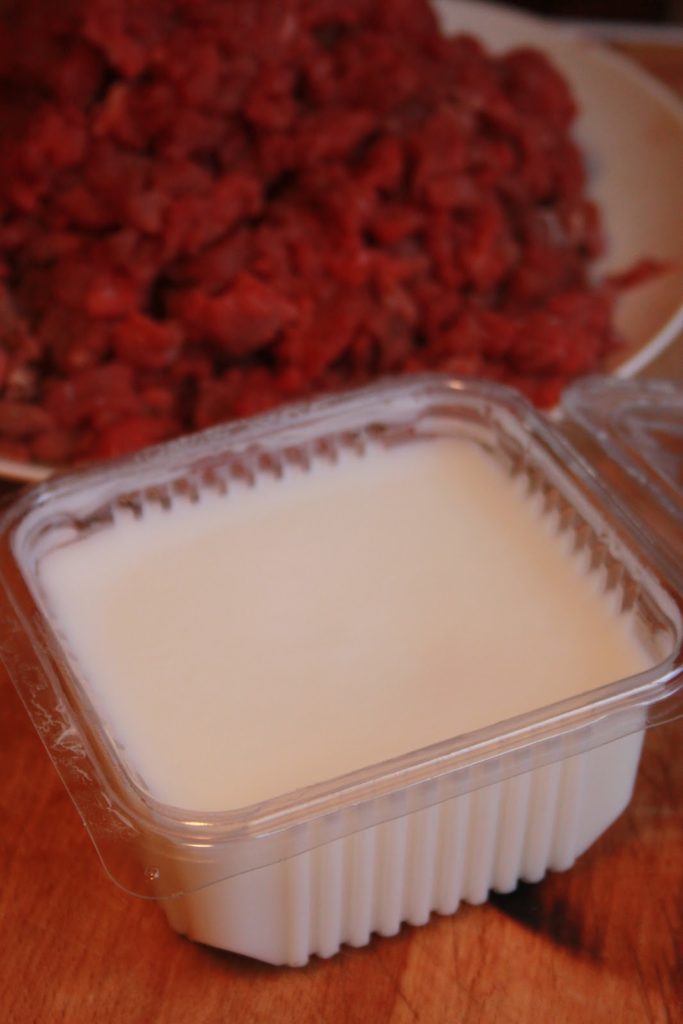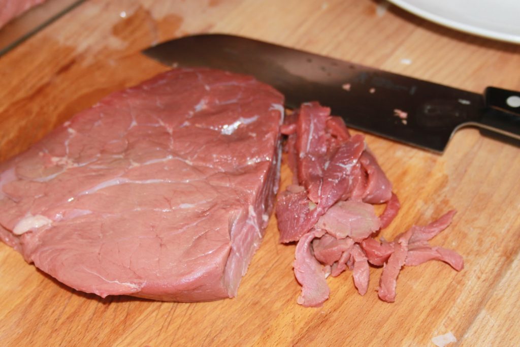 - Couper le boeuf (il faut un bon couteau!) en fines lanières.