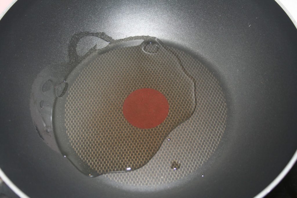 - Chauffer l'huile dans un wok (ou une autre poêle haute comme celle de la photo) sur feu vif.