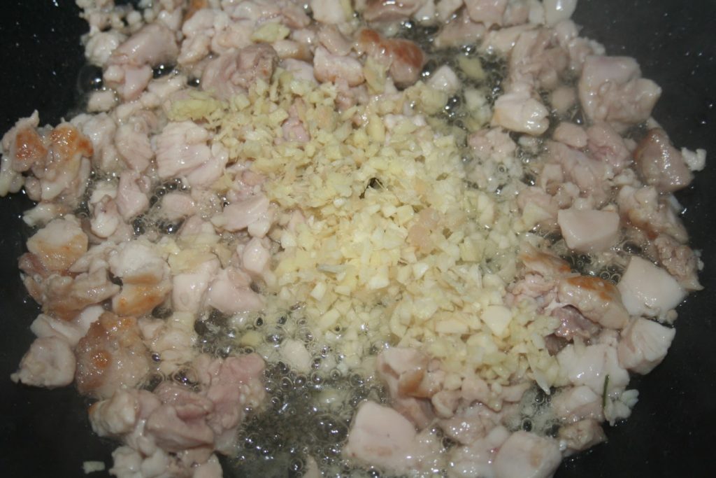 - Hacher finement les gousses d'ail et le gingembre. J'ai mis dans la recette 6 gousses d'ail, mais le goût n'est pas aussi prononcé que l'on pourrait le penser. On peut en mettre une en plus ou en moins, mais je pense sincèrement que 6 est un bon chiffre!