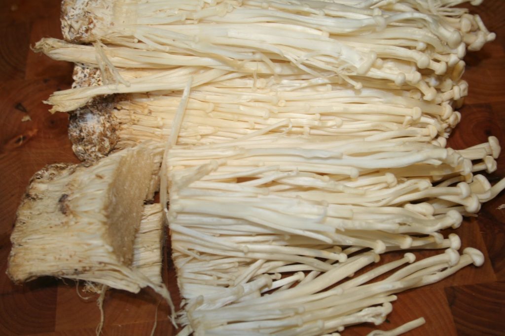 - Voici les"enokis"... C'est très facile de les trouver dans les épiceries asiatiques. Pour ma part, je les ai achetés che Paris Store dans le 13ème. De plus, ils ne sont pas chers du tout! Aux alentours de 5€ le kilo (novembre 2010).