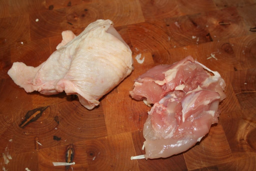 - Désosser les hauts de cuisses et enlever la peau. Puis le couper en très petits morceaux.