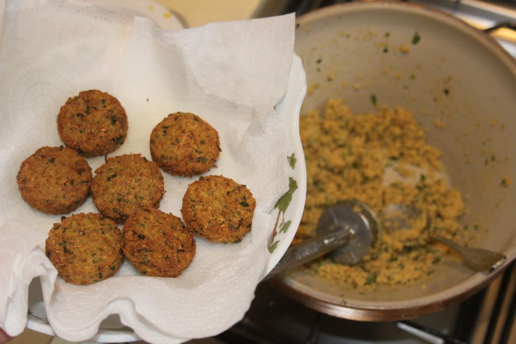 - Mettre les falafels un par un dans l’huile bien chaude.