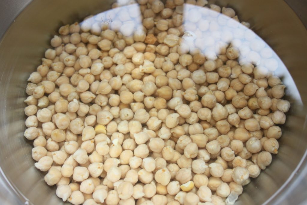 Mettre à tremper les pois chiches (ou les fèves) la veille dans de l’eau froide. Il suffit de les laisser tremper 24h.