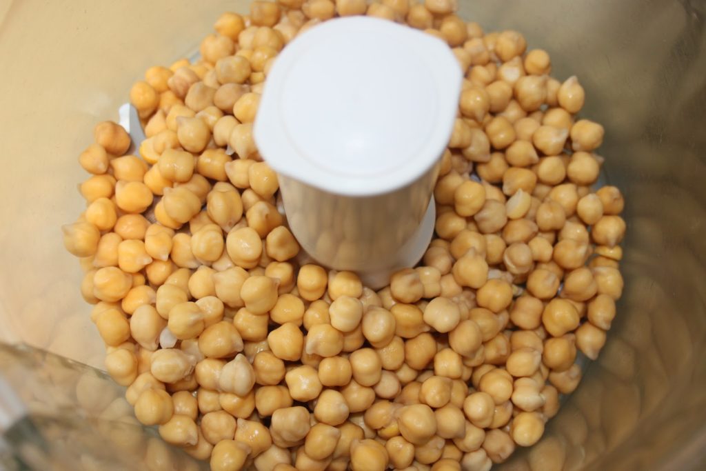 - Mettre les pois chiches (crus donc, et séchés mais réhydratés) dans un mixeur (ou un hachoir à viande).