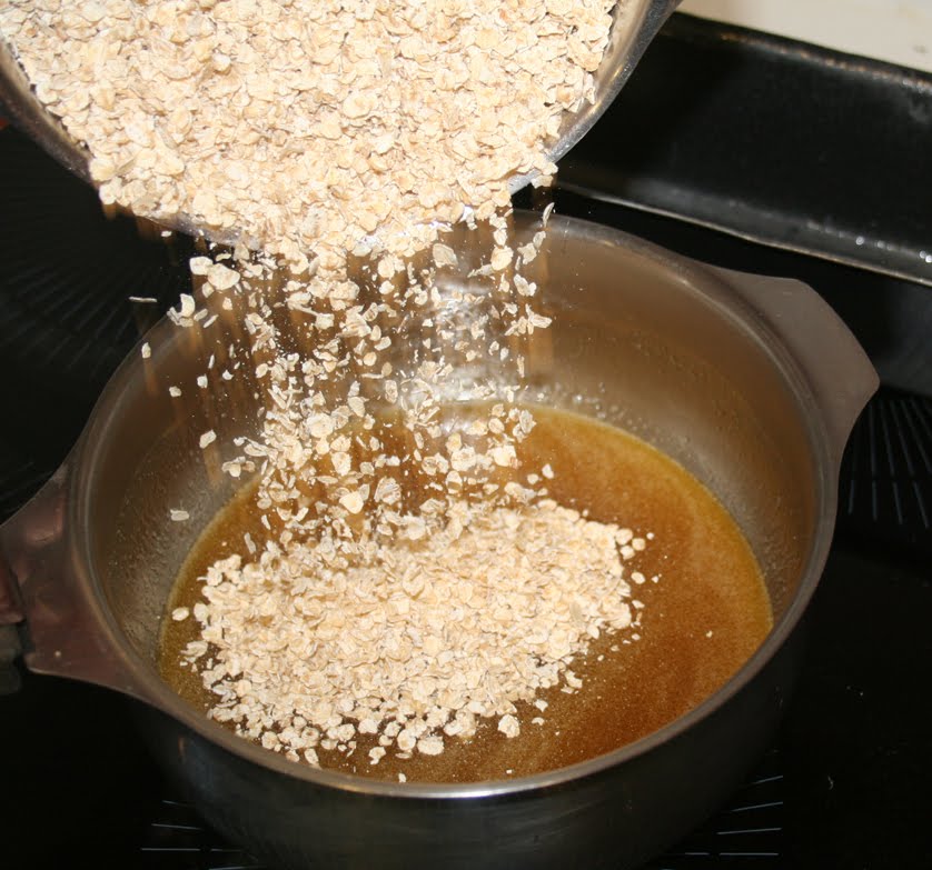 - Bien mélanger.Enlever la casserole du feu puis ajouter les flocons d’avoine.