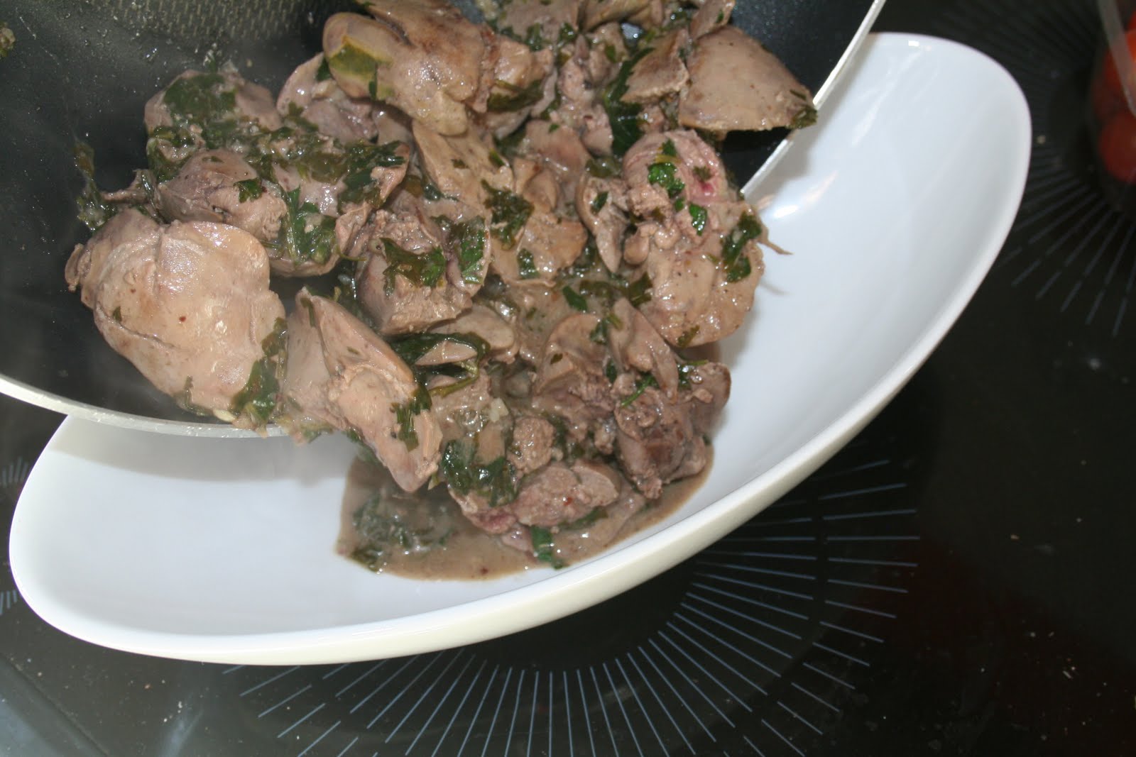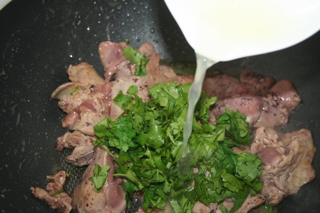 - Arroser les foies du jus de citron et parsemer des feuilles de coriandre et de persil plat.